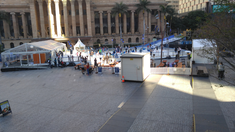 From today to 9th July 2017, a giant ice rink and ice slide have setup in King George Square. I believe you can skate in there. But you need to pay the entry fee, Adult $26, Children (8 to 13-year-old) $19, Kid (3 to 7-year-old) $12.(Buy online ~20% off).