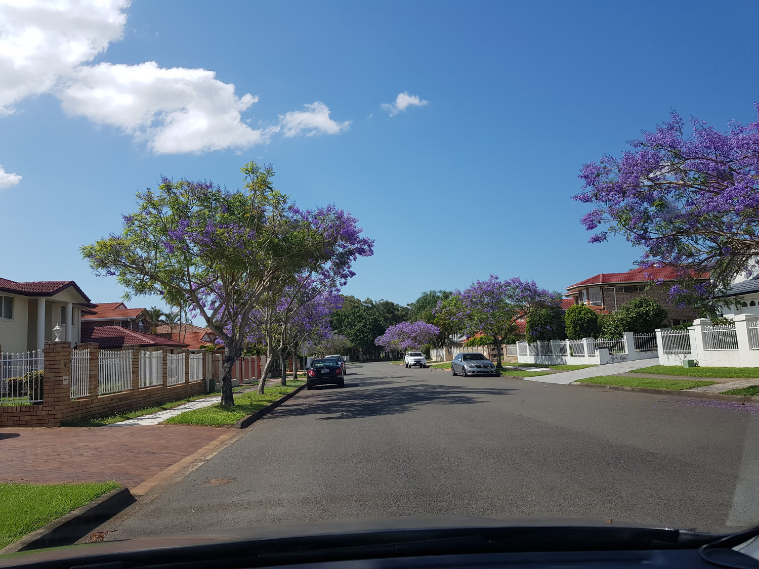 Now is Jacaranda Flowers Blooming Season in Brisbane. As I mentioned before, you can go to UQ or New Farm Park, even go to Grafton, there is a Jacaranda Festival. However, in Brisbane, that is easy, if you drive around your local area, you can find some streets will have a lot of Jacaranda tree. This weekend, we went to a local side street in Sunnybank Hills. I found the whole street has Jacaranda planted in both sides. That looks great. That is a Purple Rain! I love it!